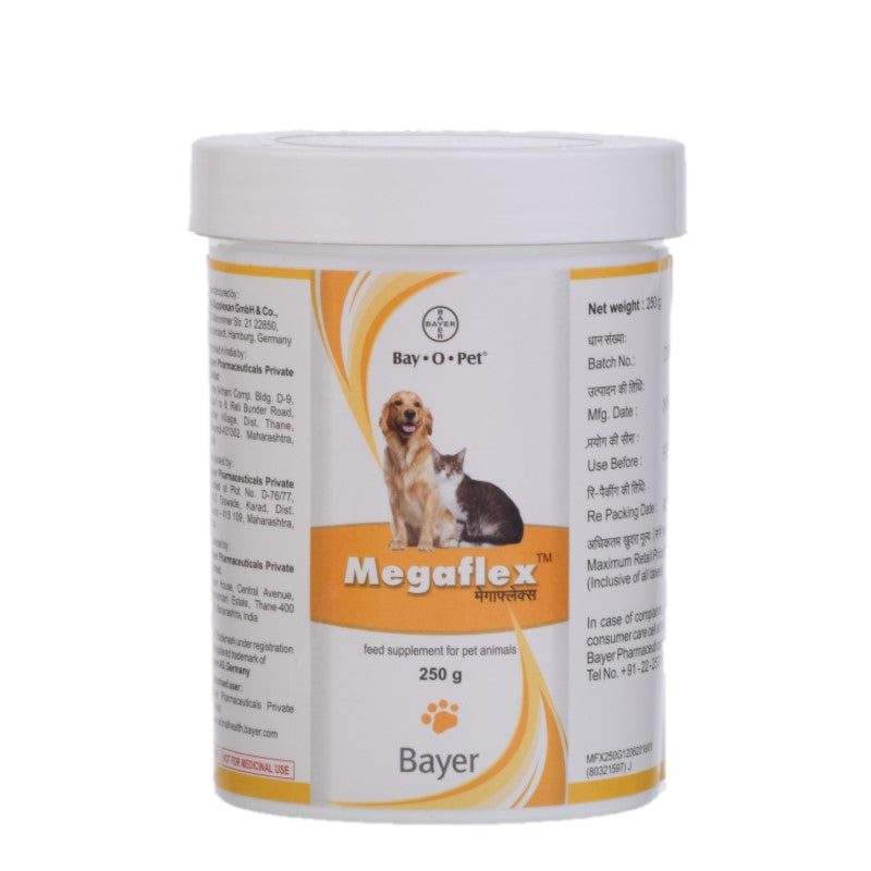 The Bayer Megaflex joint supplement for dog and cat is an excellent product to maintain the cartilage, tendons and ligaments for all your pets. This supplement works for both young and older dogs. It helps to repair the wear and tear incurred in the cartilage and tendons of older animals and facilitates strengthening of joint for all younger animals.