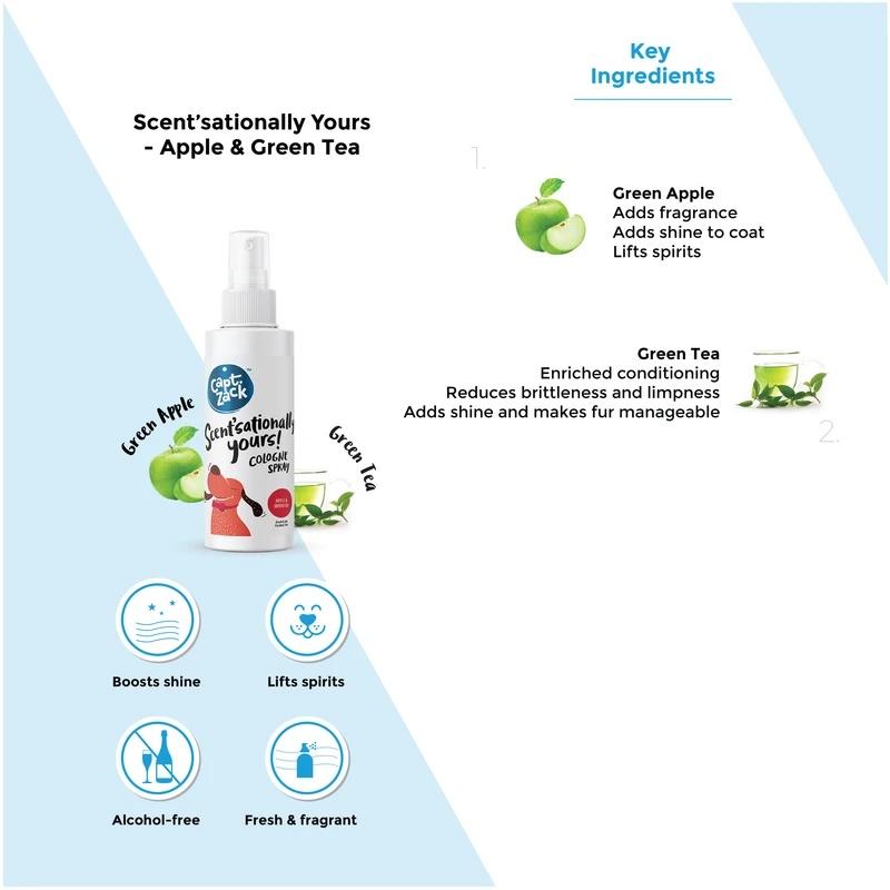 Captain Zack Cologne Spray, blended with Apple and Green Tea Extracts will make your pets smell as great as they look. It is nourishing and instantly helps control odour. It is carefully packed with natural botanical actives. Moreover, it will condition and pamper your pet’s skin thus making her coat healthy and shiny.