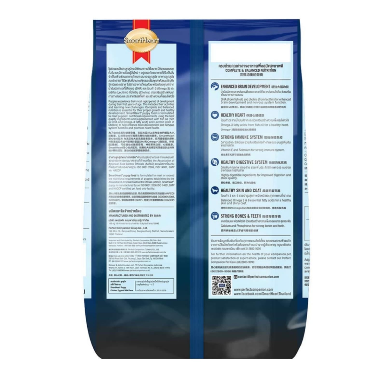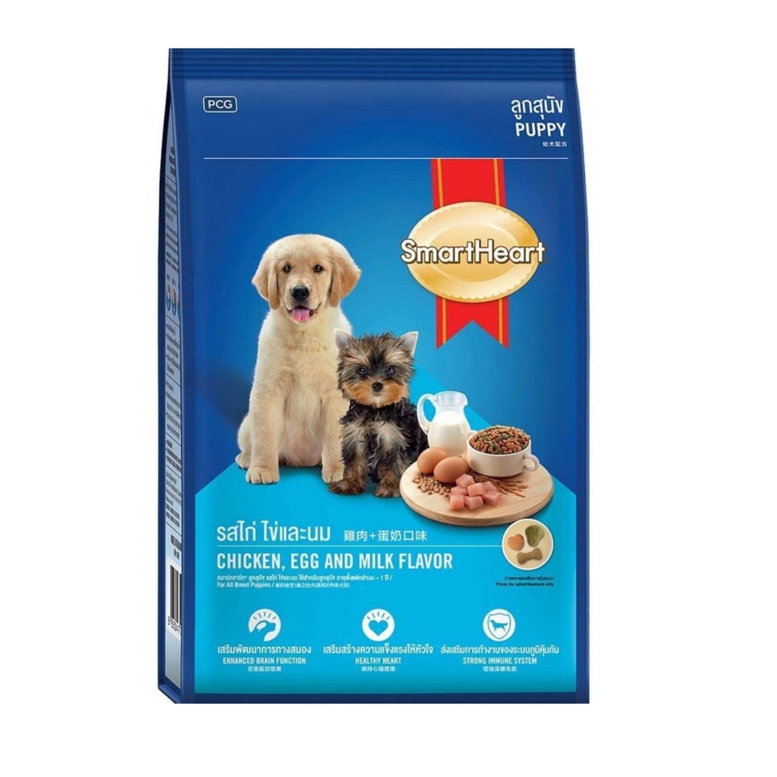 Smarheart Chicken, Egg and Milk flavour provides the nutrition that is needed for the development of puppies. Packed with the following nutrients and ingredients to help puppies grow into active adults.